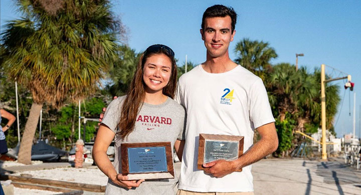 According to PRO Todd Fedyszyn, the racing was incredibly close, but Daniel Escudero ‘25 of the Webb Institute and Sophia Montgomery '25 of Harvard University came out ahead to secure the 2024 College Sailing Open and Women’s Singlehanded National Championship titles.